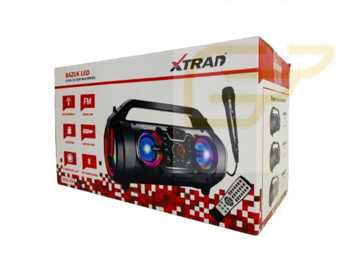 Conexão: Bluetooth, FM, P2, USB, SD, AUX, MIC1 e MIC2