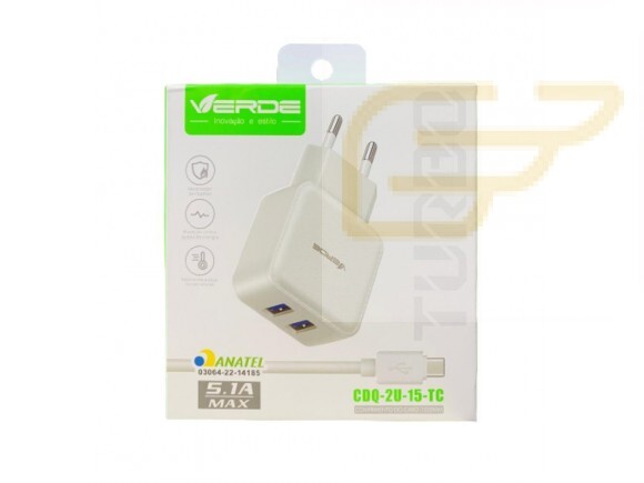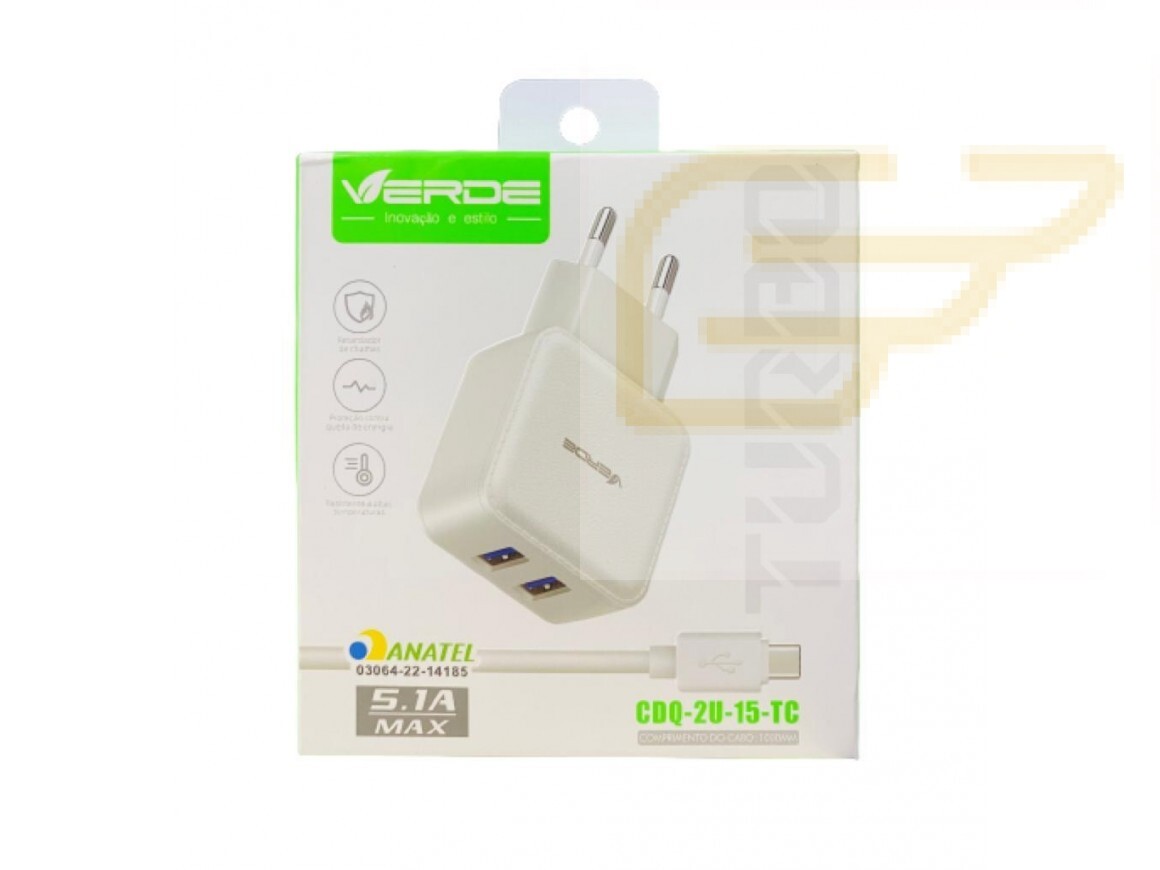 CARREGADOR 2USB TIPO C 5.1A VERDE CDQ-2U-15-TC